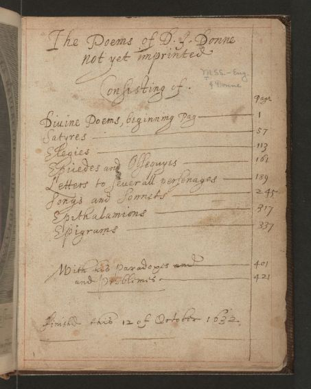 Manuscript of John Donne's poems