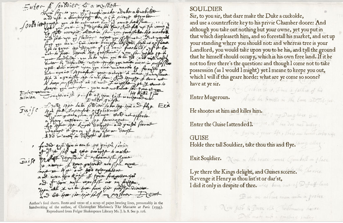 The Massacre at Paris, handwritten and typeface text